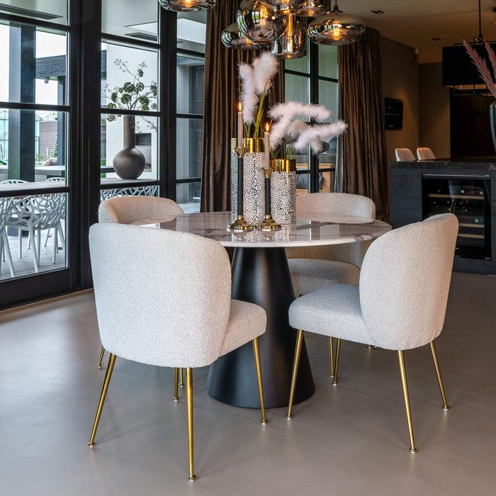 De Richmond Stoel Cannon in Khaki met geborsteld gouden accenten, voorzien van Quartz Khaki 903 bekleding, biedt een combinatie van warmte en luxe voor uw interieur. Het eigentijdse ontwerp en de harmonieuze combinatie van khaki en goud maken deze stoel tot een opvallende en stijlvolle toevoeging aan elke ruimte.